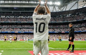 5月25日讯 本赛季西甲最后一轮,皇马为安切洛蒂、莫德里奇举行告别仪式。赛后安切洛蒂和莫德里奇先后发...