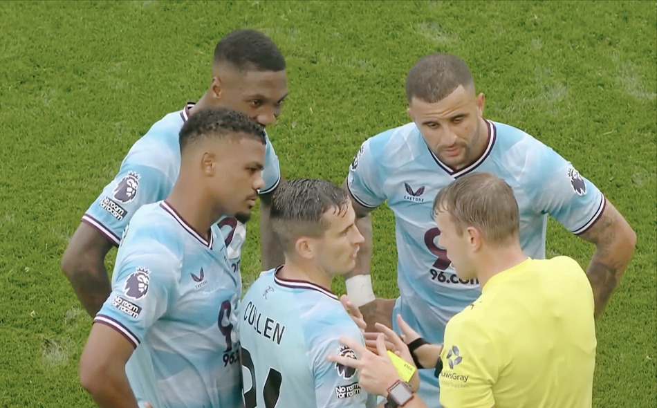 第20分钟,沃克后场直接拉倒芒特,裁判第一时间吹罚点球,但是随后VAR的介入,裁判经过仔细的回看之后,又取消了点球的判罚,引发了队长B费的不满。仅仅几分钟后,达洛特赢得一个位置不错的定位球,B费将球罚入禁区,卡塞米罗头球造成对手的乌龙,曼联率先取得领先。