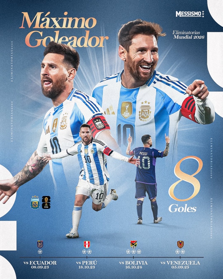 jiuyou-南美世预赛射手榜:38岁梅西8球第一!个人首夺南美世预赛金靴