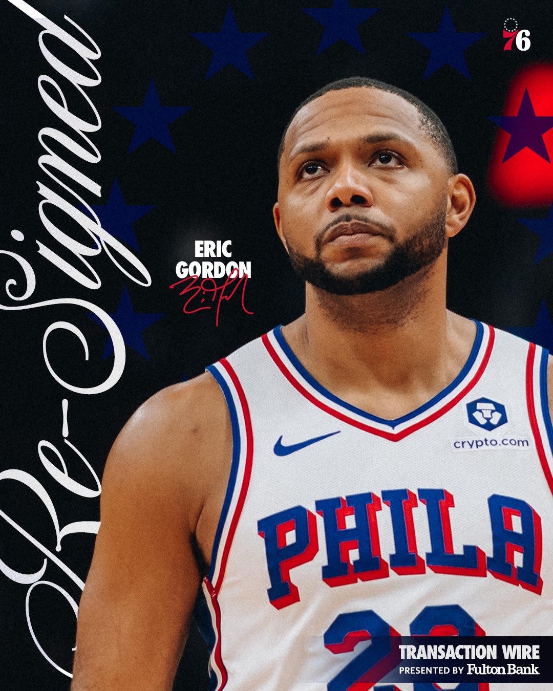 76人官方随后宣布签回埃里克-戈登。据了解,埃里克-戈登签下的是一份老将底薪。