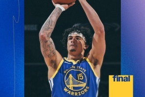 赛后勇士官方晒出本场赢球海报,盖-桑托斯登上封面。